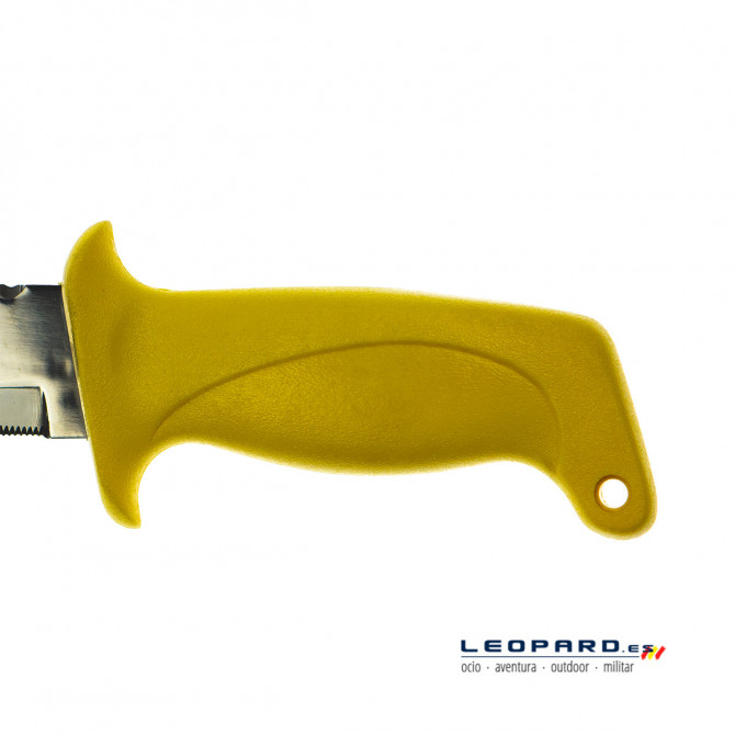 Este Aitor Tiburón amarillo es un cuchillo tremendamente funcional y versátil. Está pensado para actividades de pesca, rescate y buceo debido a su comodidad y ergonomía en el mango. Sus materiales fabricados en primera calidad rematan un cuchillo desarrollado principalmente para actividades acuáticas.