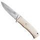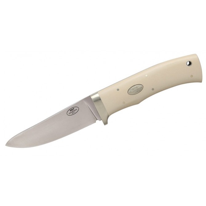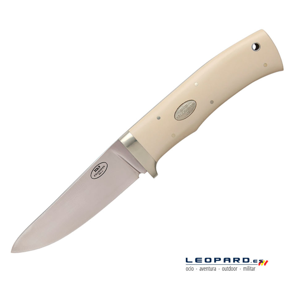 La empuñadura de este cuchillo HK9 ha sido fabricada con Micarta, un tipo de fibra textil formado por capas prensadas en resina a alta presión. Gracias a este proceso adquiere gran resistencia ante todo tipo de impactos, y también a la corrosión y al desgaste. La empuñadura de este Fallkniven cuenta con un acabado color marfil que incorpora el logotipo del fabricante sueco.