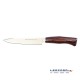 Empuñadura fabricada en madera prensada coral con casquillo inox. Es una buena elección si lo que busca es un cuchillo de caza que no sea demasiado grande.