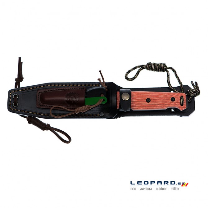 Este modelo de cuchillo Fighter 13000 incorpora una funda de piel de color negro y marrón de primera calidad, que mantendrá a salvo la cuchilla contra posibles golpes y arañazos. También, incluye un pedernal.