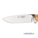 La empuñadura de este cuchillo Suther está fabricada en madera de olivo, un material de origen natural que ofrece una gran dureza y resistencia a los hongos. Además, la irregularidad de sus vetas hacen que cada empuñadura sea única.