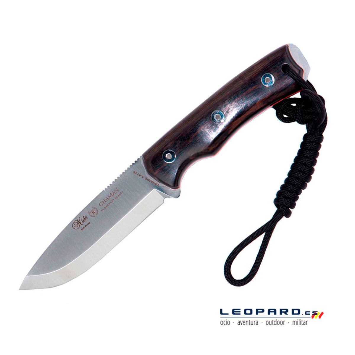 Esta pieza insólita, disponible únicamente en Leopard, ha sido diseñada con un mango fabricado en madera de granadillo, caracterizada por un color marrón oscuro con vetas irregulares. El Chaman Bushcraft Scandi soportará de forma excelente los impactos múltiples.