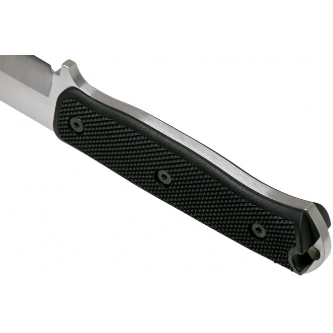 El mango de este cuchillo F1X tiene un tacto rugoso y una estructura ergonómica que permite la utilización del cuchillo durante un largo tiempo de forma cómoda. Además, está fabricado en este tipo de elastómero termoplástico que posee excelentes propiedades físicas, ya que es ligero, con gran dureza y resistente a productos químicos.