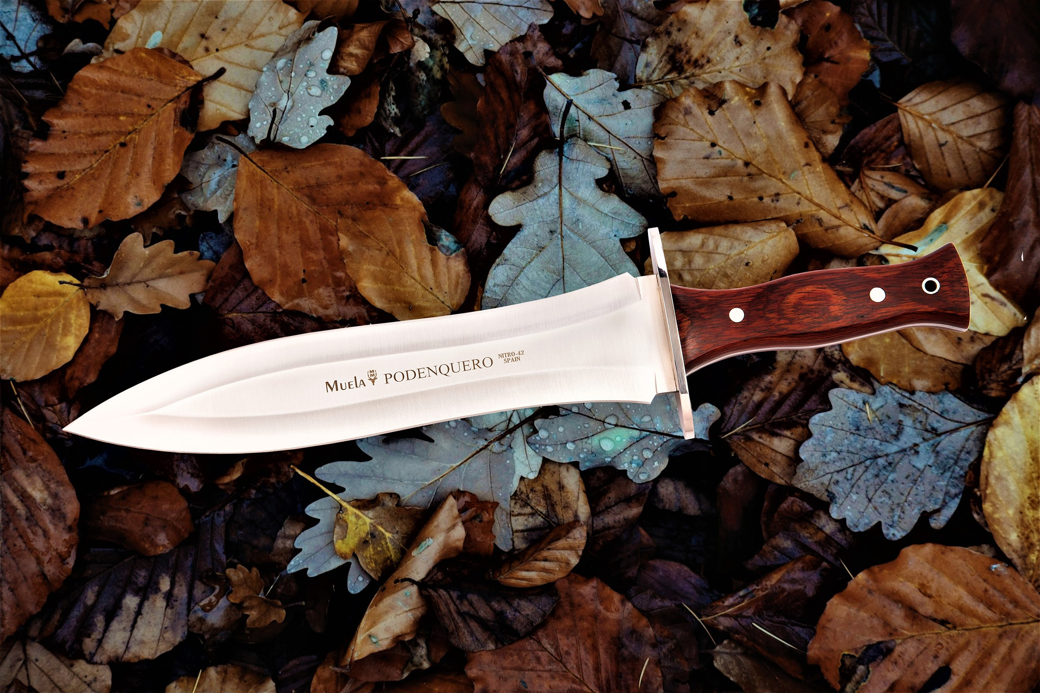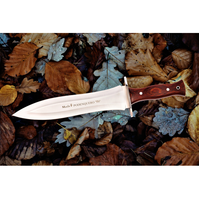 Los desarrolladores de Muela han implementado el modelo Podenquero, un cuchillo preparado para la caza y el bushcraft, gracias a su hoja de gran tamaño permitirá realizar cortes muy profundos y precisos durante largas sesiones de trabajo. Su hoja está fabricada en acero inoxidable Nitro-42, una aleación de grandes características. La empuñadura de este cuchillo ha sido desarrollada de manera artesanal en madera prensada de Rosewood, muy resistente ante golpes y rozamientos.