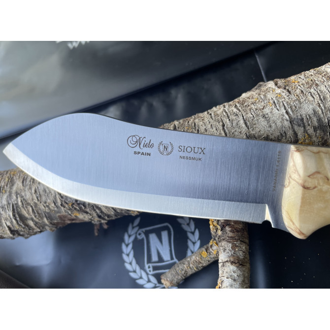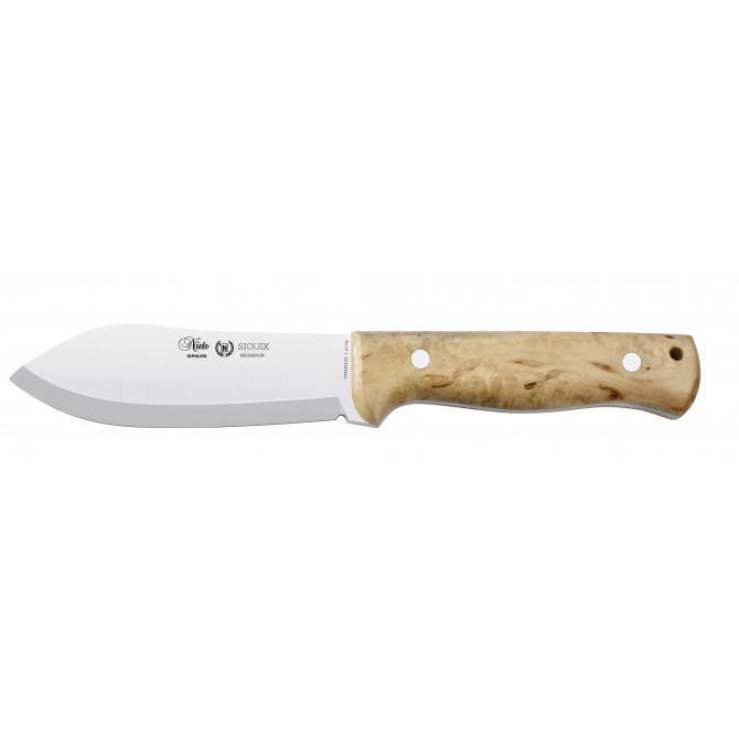 El Nieto Sioux Nessmuk tiene como gran ventaja su hoja en acero inoxidable. La proporción de cromo y carbono dentro de la composición de de la hoja ayudan a que este cuchillo sea resistente a condiciones climatológicas adversas y entornos de corrosión.
