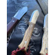 Este cuchillo en particular dispone de un mango ergonómico fabricado en madera de olivo, un tipo de material natural de alta densidad que incorpora vetas irregulares en su estructura, de ahí que cada producto fabricado con esta madera sea único respecto a otro de similar producción.