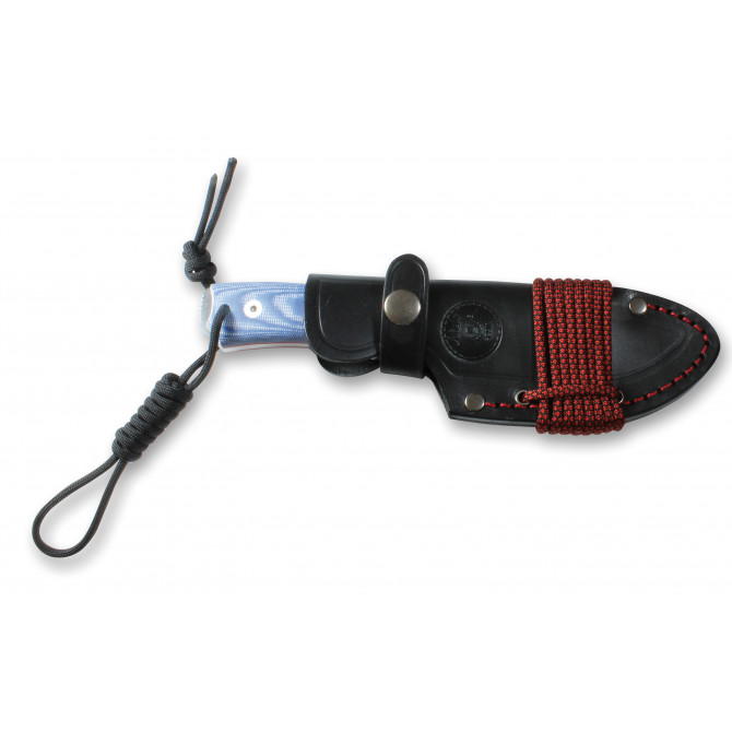 La funda de este cuchillo Nieto Panzer está fabricada en piel de color negro con Paracord rojo. Tiene el logotipo de la marca sobreimpresionado en ella, y permitirá al cliente un transporte seguro y cómodo.