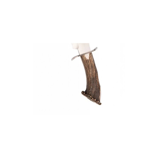 La empuñadura de este cuchillo de Muela está fabricada en asta de ciervo, un material natural que le confiere un acabado excepcional y único. Este material es muy resistente a los impactos y a los daños.