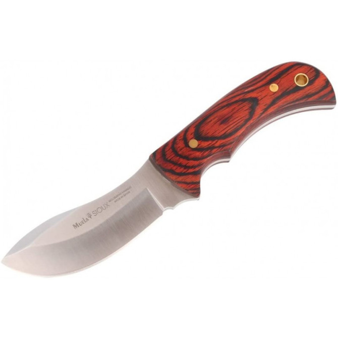 Otra de las novedades que incluímos en catálogo es el Muela Sioux. Es un cuchillo de caza, pequeño y compacto, de hoja enteriza, fabricado en España. La hoja que incorpora es de acero inoxidable MoVa (X50CrMoV15) y la empuñadura de madera prensada coral. Incluye agujero para cordón fiador y una funda de piel para transportarlo y protegerlo.