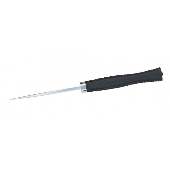 La empuñadura de este cuchillo está fabricada en Thermorun, un tipo de elastómero termoplástico que posee excelentes propiedades físicas, ya que es ligero, cuenta con una gran durabilidad y es resistente a productos químicos.