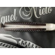 La empuñadura de este cuchillo está fabricada con un material natural, madera de granadillo. Se trata de una madera de grano medio, dura, pesada y con tacto oleoso, que normalmente presenta un color oscuro y un veteado muy marcado.