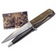 It was 1915 when Heinrich Boker & Co. Solingen received the government order to develop a compact fighting knife that would be especially useful for trench warfare. After 90 years, we are reproducing the original knife blade out of high carbon steel with 0.75% carbon. The pronounced steel crossguard, the wood forearm handle, (designed for a firm and safe grip), and the official tang stamp are identical to the original - as is the cowhide leather sheath. On the back of the blade, each knife shows its serial number. Blade length: 5 5/8". Overall length: 10". Weight: 5.9 oz.