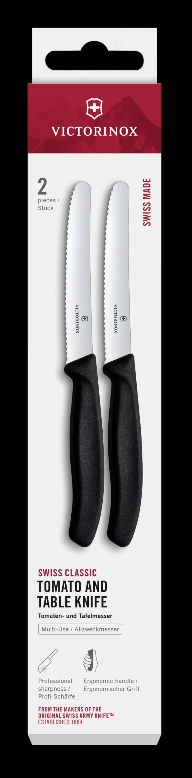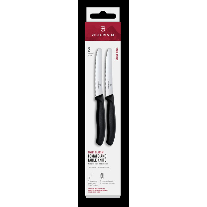 El cuchillo de cocina Swiss Classic, desarrollado por la prestigiosa marca Victorinox, ofrece un filo serrado para garantizar un buen corte por deslizamiento. Por ello, es preciso para utilizar en la cocina sobre alimentos como frutas, verduras o pan. Este modelo contiene dos unidades con un mango de color negro.