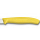 El cuchillo de cocina Swiss Classic, desarrollado por la prestigiosa marca Victorinox, ofrece un filo liso para garantizar un buen corte por presión. Por ello, es preciso para utilizar en la cocina sobre alimentos blandos que requieran ser pelados o trinchados. Este modelo contiene dos unidades con un mango llamativo de color amarillo.