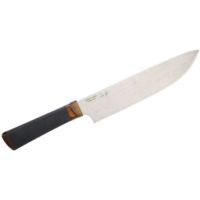 Este cuchillo serie Agilite fabricado por Ontario en EEUU no puede faltar en ninguna cocina que se precie. El Agilite Chef's es capaz de hacer cualquier tarea de corte con mucha facilidad en la cocina, por ello es demandado por los grandes Chefs de todo el mundo. Incorpora hoja de acero inoxidable Sandvik 14C28 y la empuñadura es de Kraton.