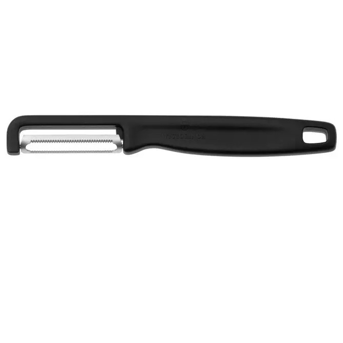 Leopard incorpora a catálogo unos fantásticos peladores para fruta y verdura, fabricados en Suiza por la empresa Victorinox. Incorpora hoja microdentada de doble filo para pelar cualquier tipo de fruta y verdura tanto con cáscara blanda como dura. Mango ergonómico, fabricado en polipropileno, que se agarra con facilidad. Color negro. Apto para lavavajillas.