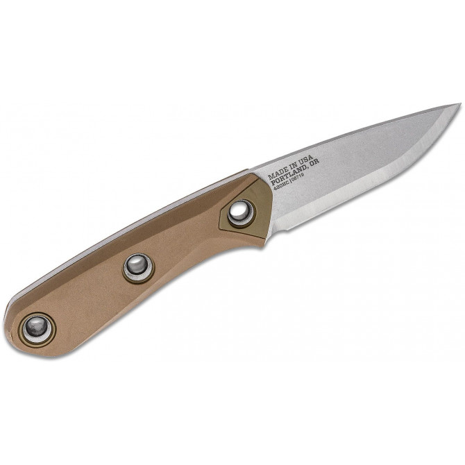 Gerber ha desarrollado la nueva colección de cuchillos Principle, formada por dos piezas de supervivencia con hoja Drop Point, desarrollada en acero inoxidable . Dispone de una empuñadura de Micarta y una funda multiposición de Kydex, un polímero resistente a impactos. Este modelo presenta un acabado en color coyote.