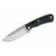 La empuñadura negra y verde de este cuchillo de Gerber está fabricada en G-10, un tipo de fibra de vidrio ultra-resistente que se forma a través de la agrupación de miles de capas que se someten a alta presión.