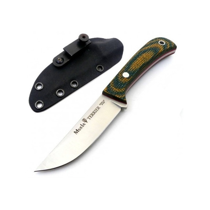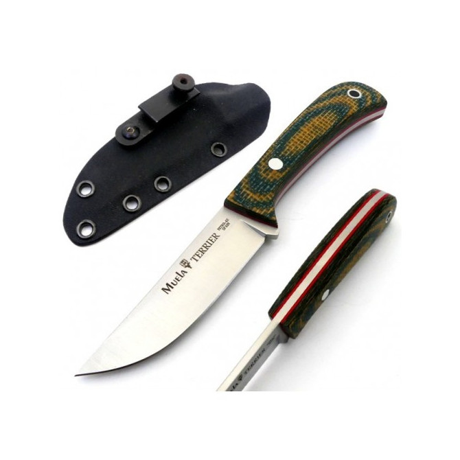 La compañía Muela ha lanzado al mercado la nueva línea de cuchillos enterizos Terrier. El cuchillo Terrier 9G/K incorpora una funda Kydex que permite portarlo en tres posiciones diferentes. Además, incorpora una hoja fabricada en acero Nitro-92 y la empuñadura está diseñada en Micarta verde mostaza.
