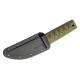 Así mismo, cuenta con un diseño texturizado, inspirado en los mangos de las espadas japonesas, para mejorar la ergonomía y que de esta forma el cuchillo no se resbale de las manos del usuario incluso si las tiene mojadas o frías. Color Verde (OD Green).