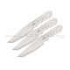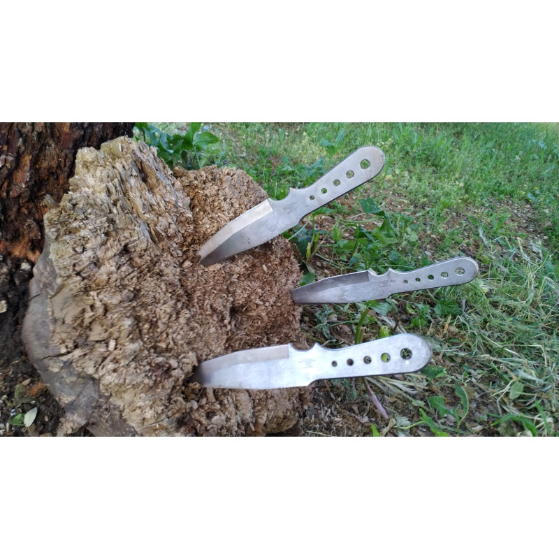 "El set de cuchillos de acero inoxidable es ideal para ser lanzado con media vuelta. Con una buena tecnica se clavaran el 100% de las veces ya sea con la punta o con el pico de lo hoja tipo tanto."