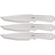 GH5003 CUCHILLO LANZADOR Hibben Large Triple Thrower Set. Includes three 11 1/4" overall knives with 6 1/4" tanto blade. One piece stainless construction. Leather belt sheath holds all three. Target included.