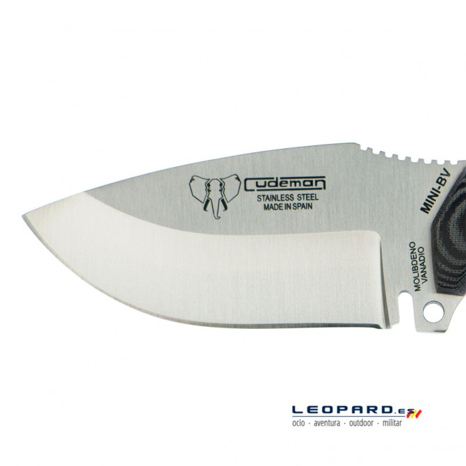 Los desarrolladores españoles de Cudeman han diseñado la hoja del cuchillo Mini Boina en un perfil Drop Point o punta caída. Se trata de uno de los estilos de hoja que mayor versatilidad y polivalencia presenta.