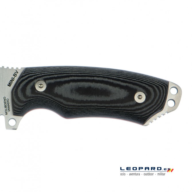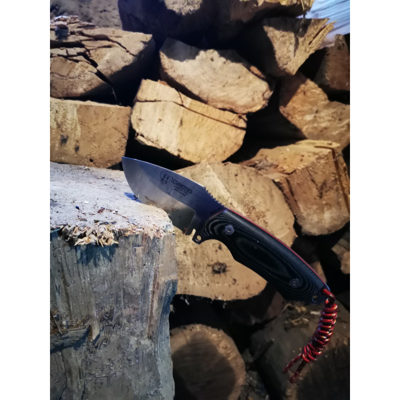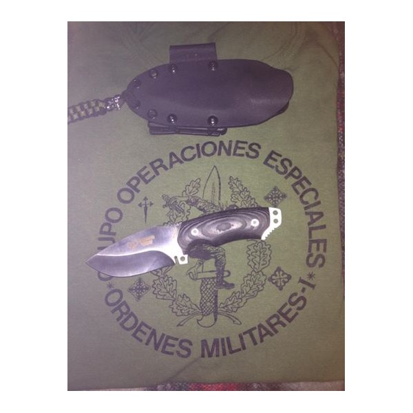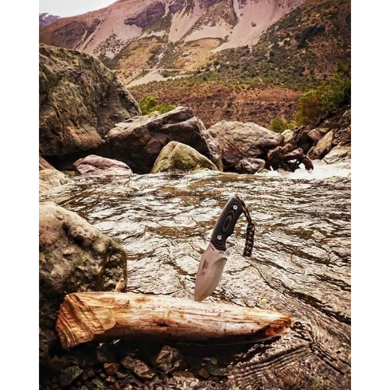 Uno de los factores diferenciales de este cuchillo es que su empuñadura está fabricada en Micarta. Este material, formado por láminas de tela que se impregnan en resina y se someten a alta presión, da como resultado una gran resistencia e impermeabilidad.