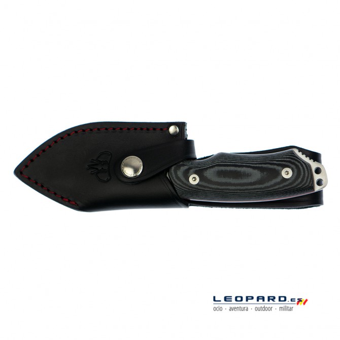 La compañía Cudeman ha decidido incorporar en este modelo una funda de cuero negra de alta calidad. De esta manera, el usuario podrá transportar de una manera más segura y práctica el cuchillo. Además, estará protegido contra posibles golpes y arañazos.
