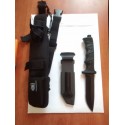 "Vista general del cuchillo ELITE FORCE 703 kit:funda de cuerda con gomas elásticas para una sujeción perfecta a la pierna ,la funda de goma con piedra de afilar, pedernal , herramienta de corte y el cuchillo , relación calidad-precio inmejorable . otro para la colección."