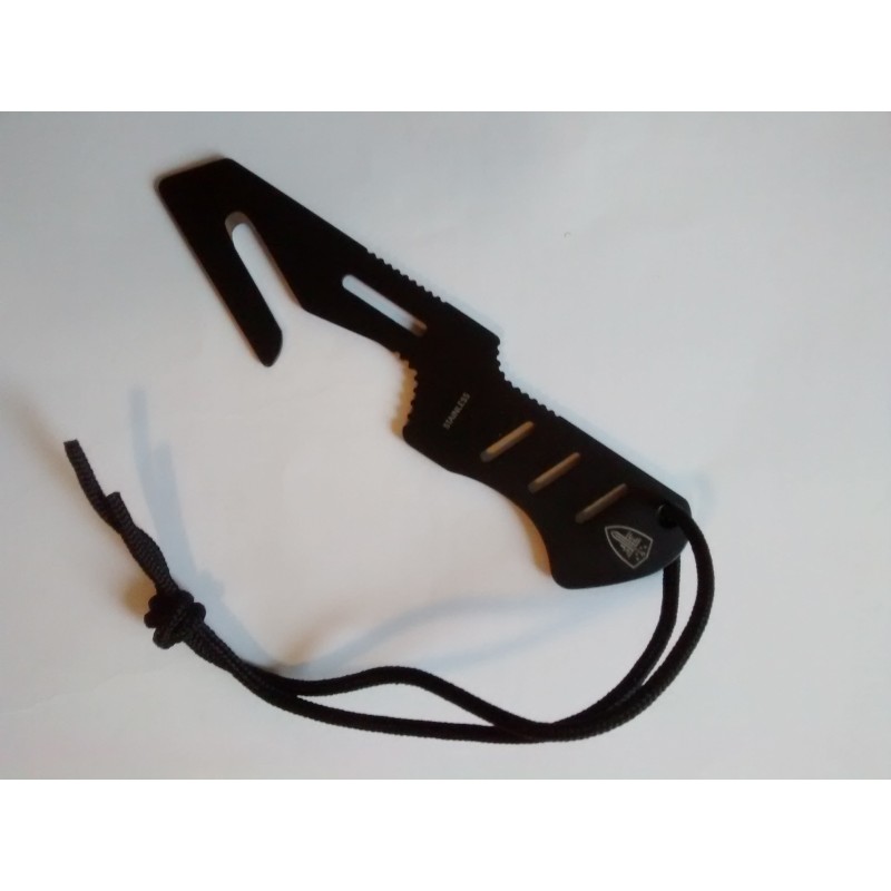 en la parte posterior de la funda de cordura podemos encontrar esta herramienta que sirve para cortar desde cinturones, cuerdas,etc...