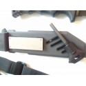 No hay cuchillo que se precie que no disponga de una buena piedra para afilarlo. Ésta va también situada por la parte trasera de la funda.