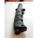 La empuñadura es de un material como gomoso, que se adhiere muy bien a la piel y el agarre es fenomenal.