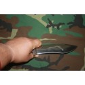 Aquí observareis el agarre habitual del cuchillo en su manera mas habitual en la mayoría de los casos de su utilización, donde vemos que ocupamos con la mano toda su extencion del mango, buenísimo agarre , sin desplazamientos que nos puedan cortar la mano.