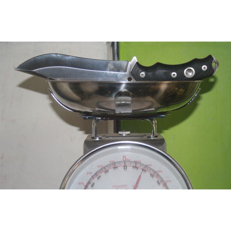 Por ultimo, una imagen mejor que mil palabras , indicaros del peso del cuchillo solo sin mas utensilios , es de 310 grs. Espero haberos servido de utilidad y os decidáis por un cuchillo frabricado en España , diseñado por un español , y que es bonito, utilísimo, y de una excelente calidad, y diseño. Gracias y espero ayudaros en vuestra decisión .Saudos.