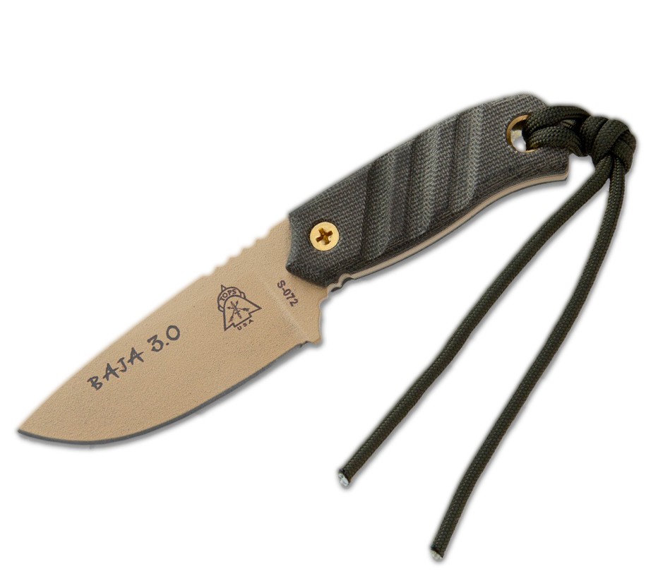 Cuchillo con una longitud total de 15,87 cm y un largo de hoja de 7,62 cm. Construido en un acero 1095 con una dureza 56-58 HRC. Acabado en curtido (canela), un peso de 89,58 gr. Funda de cuero. Fabricado en USA.