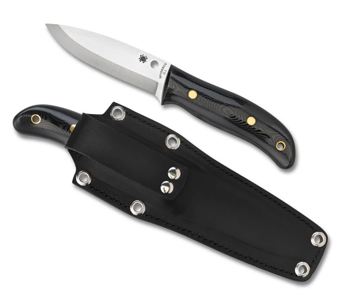 Bushcraft - 8 3/4" overall. 4 1/8" 0-1 high carbon tool steel blade. Full tang. Polished black G-10 handles. Lanyard hole. Black leather belt sheath.