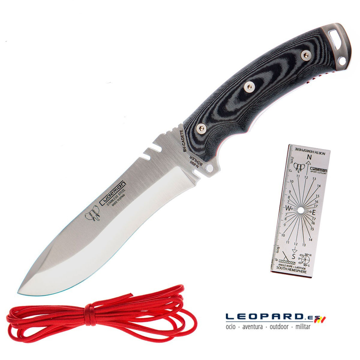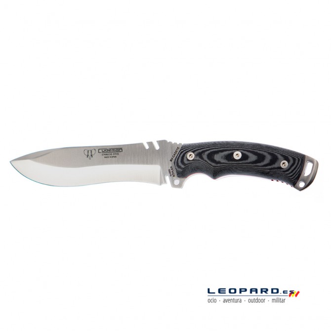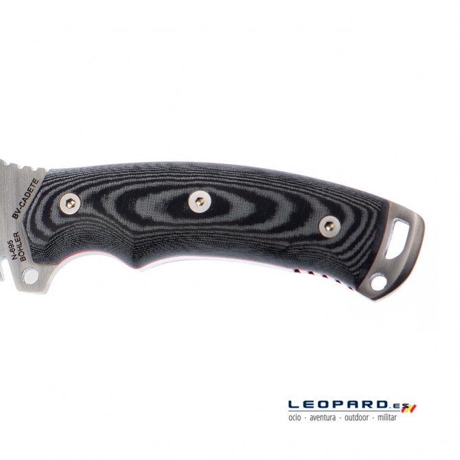 En este sentido, la Micarta es impermeable y resistente a las variaciones de temperatura, por lo que aumentará la vida útil del cuchillo. Además, incorpora un agujero para cordón fiador en la parte posterior y un separador rojo.