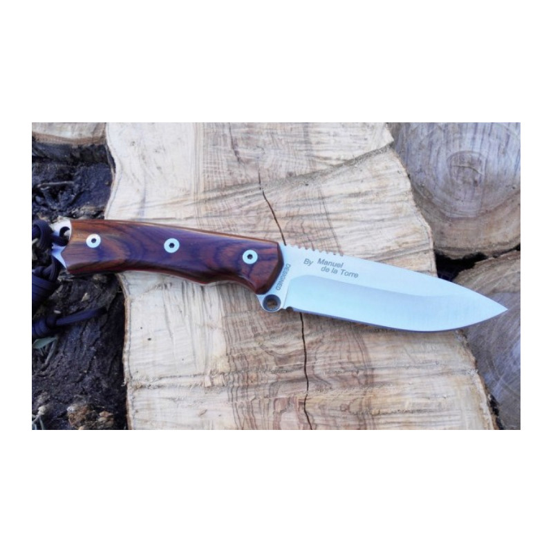 "Las cachas de cocobolo le dan una gran imagen de cuchillo de categoría, están perfectamente pulidas y, aunque es madera natural, aguantará la humedad perfectamente, además son desmontables"