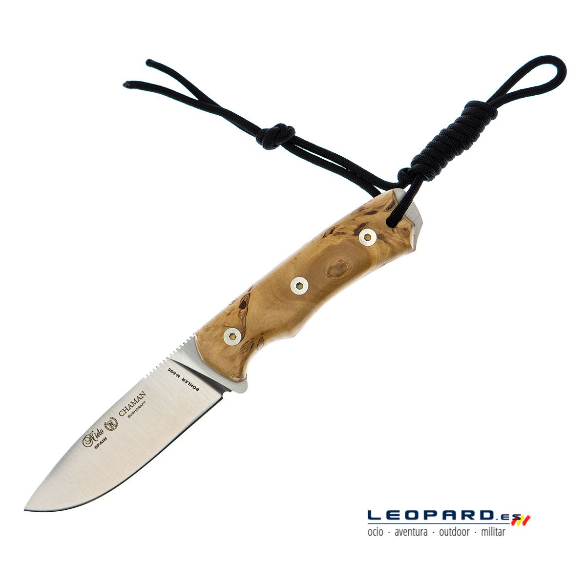 Nieto Chaman bushcraft con funda mejorada, un cuchillo excelente y muy ligero , lo he probado en el campo y va genial. Detalle de la gran calidad del cuero de la marca española.