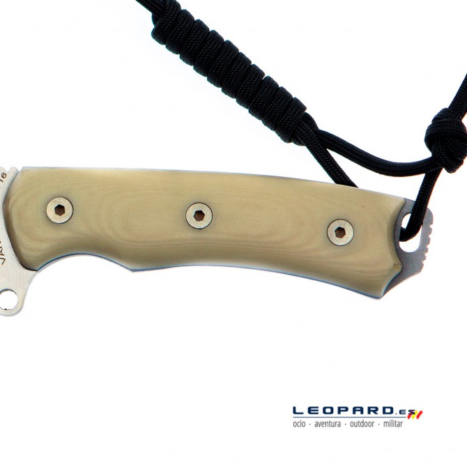La empuñadura de este modelo está fabricada en Micarta, un material que destaca por su ligereza y resistencia. Está formado por láminas de tela impregnadas en resina que se someten a alta presión.