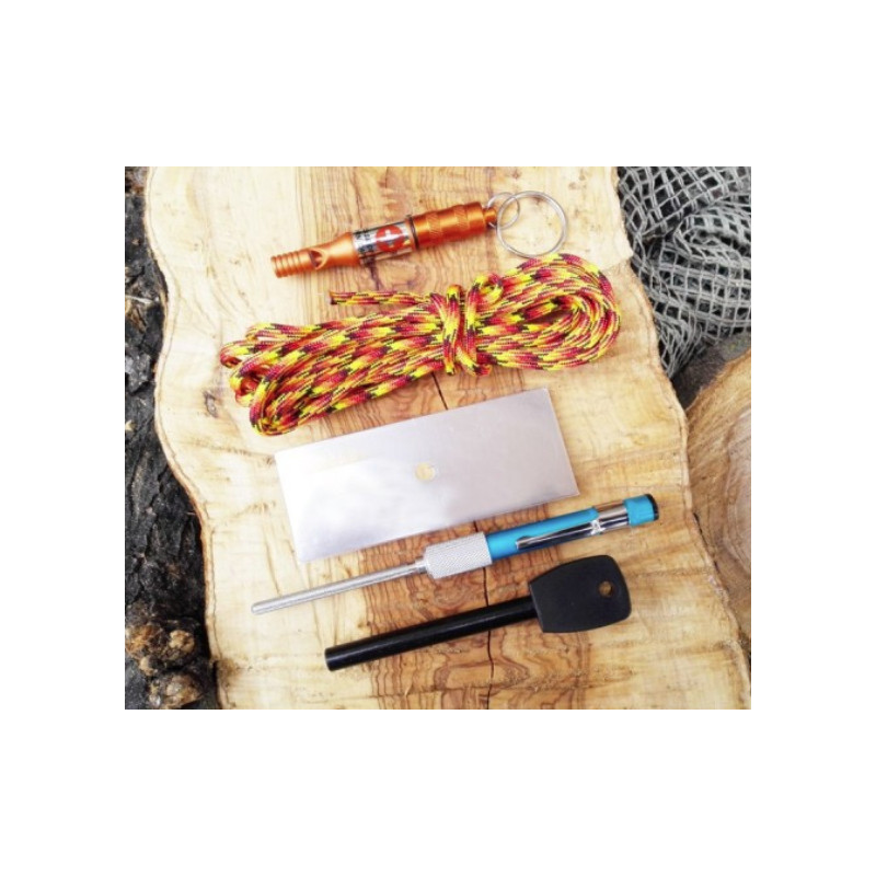 "Vienen varios útiles que pueden ser interesantes, lo principal una navaja de rescate, pero el paracord, para mi es esencial, siempre me ha sido útil unos metros de cuerda para la tienda de campaña o agrupar la madera"