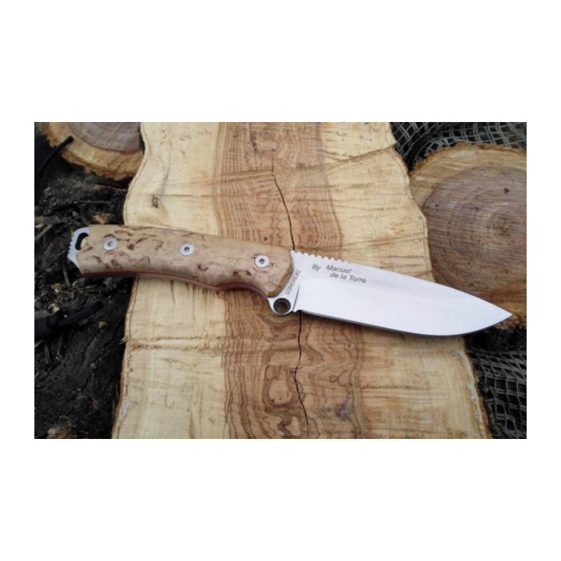 Como ya hemos señalado anteriormente, la característica diferencial de los seis cuchillos que forman la Serie Chaman Kit reside en el material de la empuñadura, aunque todas ellas disponen de una dureza superior y alto rendimiento frente a la fatiga. En este caso, se ha utilizado Madera de Abedul Rizado, un tipo de material natural.