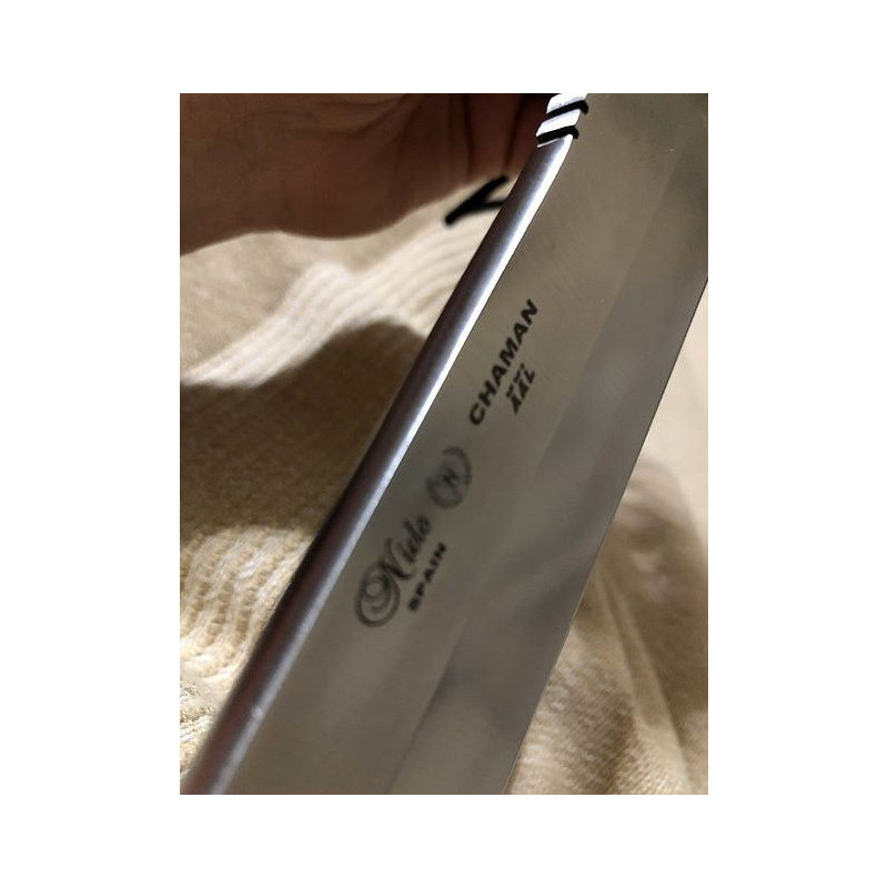 La hoja del Nieto Chaman XXL está desarrollado en esta aleación de altísimas prestaciones, que posee un agregado de cobalto, lo que mejora en gran medida todas sus prestaciones en torno al filo (calidad del afilado, retención y mantenimiento). Además, resiste al impacto y a la corrosión de forma excelente.