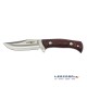 El cuchillo Lakhota 12R es un cuchillo de caza de hoja enteriza desarrollado en España por la prestigiosa empresa Muela. La hoja está fabricada en acero MoVa (1.4116) y la empuñadura está diseñada en madera prensada coral con agujero para cordón fiador. Además, el texturizado que tiene favorece el agarre. Para un transporte más seguro incluye funda de piel.