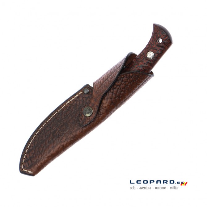 Este cuchillo viene equipado con una funda de cuero de color marrón de alta calidad. De esta forma, el usuario podrá transportar el cuchillo de una manera más práctica y segura. Además, la cuchilla estará protegida contra posibles golpes y arañazos.