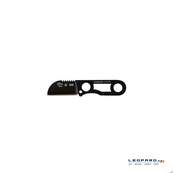 Cuchillo diseño de Manuel de la Torre y fabricado en España por la prestigiosa empresa de cuchillería Miguel Nieto. Hoja enteriza fabricada en acero Vanadio 1.4116. Cremallera en el lomo para trabajar con total seguridad, sin que se resbale. Empuñadura esqueletizada fabricada en acero Vanadio 1.4116 con agujero para cordón fiador. Incluye funda de Kydex. Color: Negro.