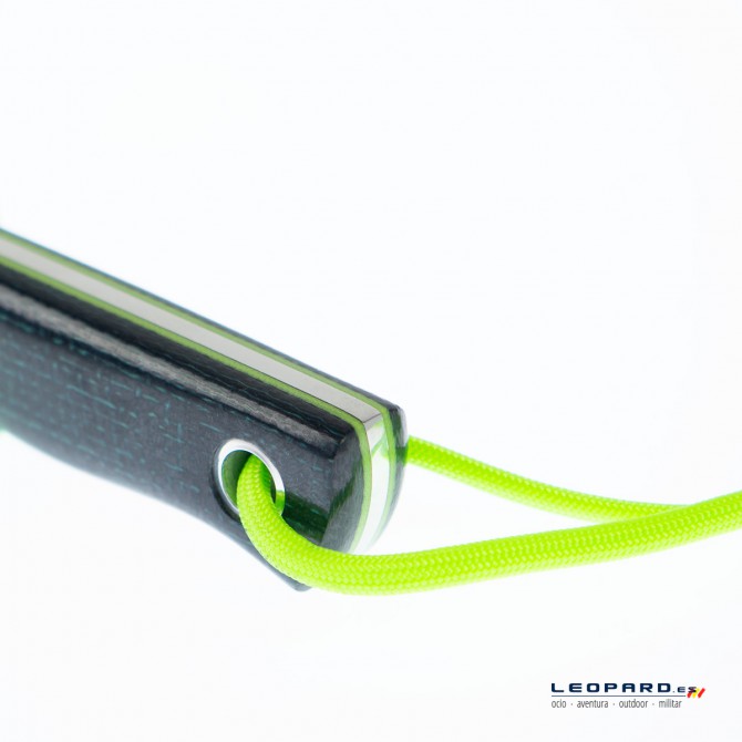 "Detalle del bonito color verde Lima que trae este modelo en micarta yute.Combina mucho y bien con el cordón que trae de fábrica."