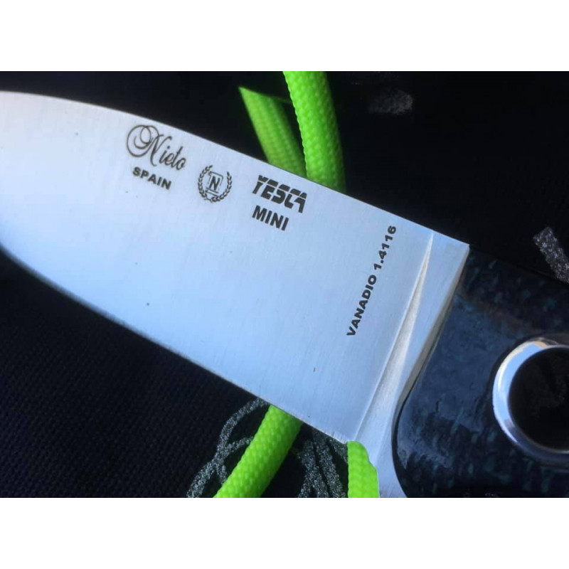 Ambos modelos tienen una hoja enteriza fabricada con este tipo de elemento químico fabricado por ThysenKrupp, y que cuenta con un equilibrio excelso entre su composición de carbono y cromo, por lo que los cuchillos Yesca Mini serán prácticamente inmunes a la corrosión producida por contacto con elementos ferrosos.