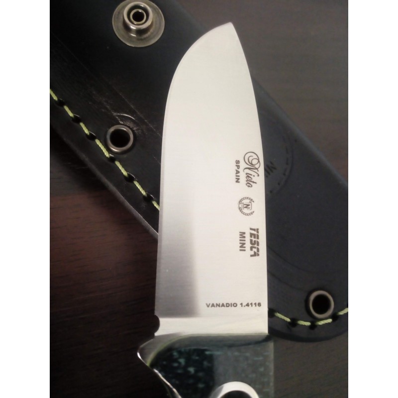"La hoja de excelente calidad en acero 1.4116, es un acero que se lleva usando muchos años y propio de filos tradicionales españoles. Como es de esperar la hoja tiene un filo excelente y una buena punzada"